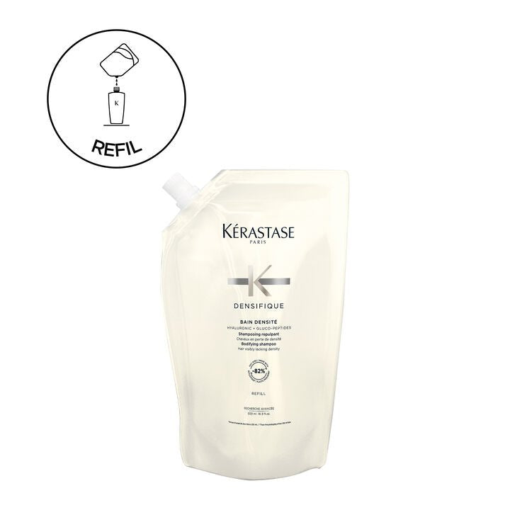 Para prolongar sua experiência com o Bain Densité e promover um consumo consciente, agora você pode adquirir o refil de 500ml . Sua fórmula desenvolvida para fibras capilares com perda de densidade. O Shampoo Kérastase Bain Densité fortalece o cabelo na fibra e desperta os folículos adormecidos para dar mais textura, substância e resistência ao cabelo. O corpo e a elasticidade são restaurados para que o cabelo pareça visivelmente mais encorpado e com aparência mais espessa.